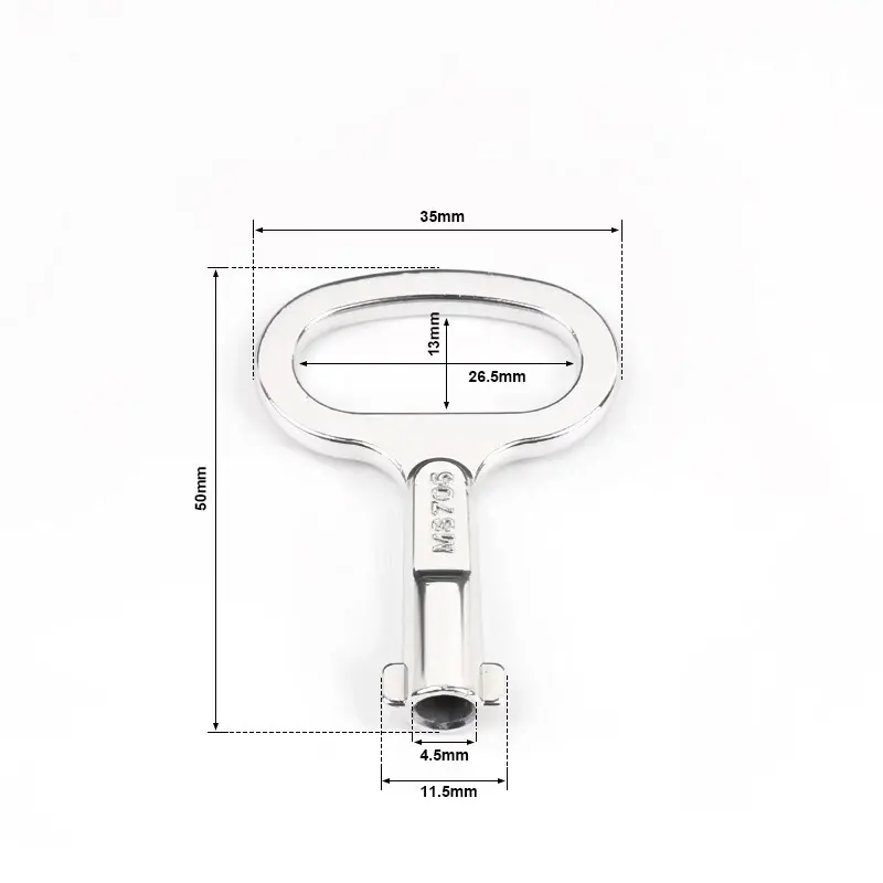 Никельмен қапталған алюминий қос ниеті: Жалпы өлшемдер: жалпы өлшемдер 35 × 50 мм, құлыпталған цилиндрдің центінің диаметрі 4,5 мм, құлыпталған цилиндр орталығы + қос тістер диаметрі 11,5 мм.