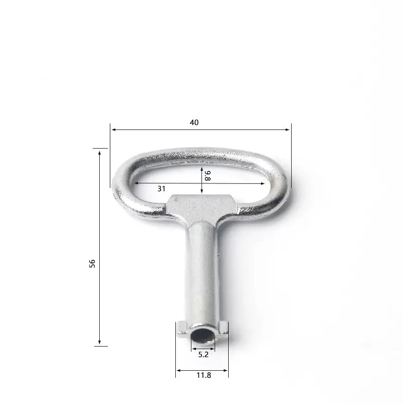 Атласты алюминийді екі жақты кілт: Жалпы өлшемдер: жалпы өлшемдер 40 × 56 мм, құлыпталған цилиндрдің диаметрі 5,2 мм, құлыпталған цилиндр орталығы + қос тістерінің диаметрі 11,8 мм.