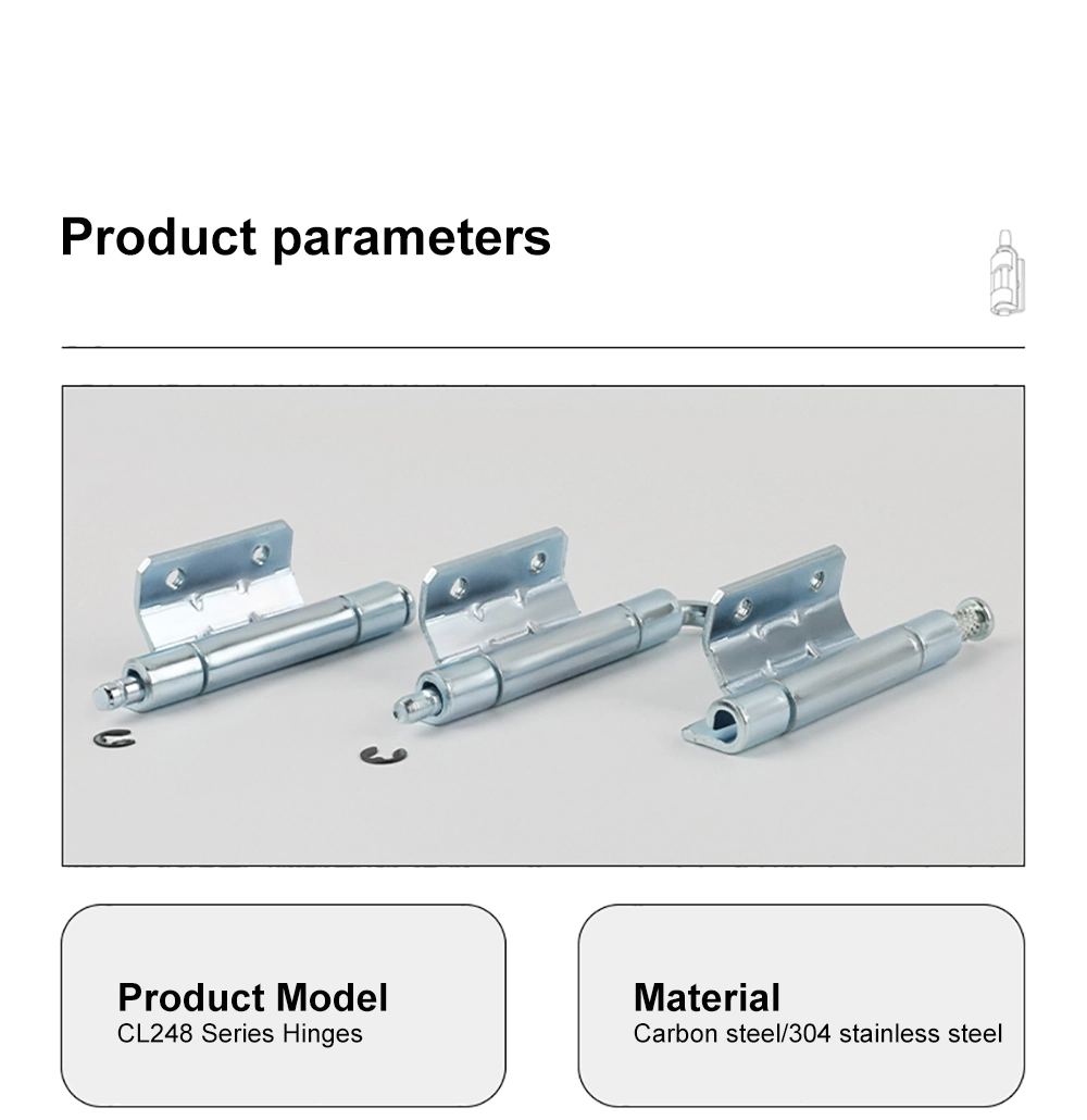 CL248 тарату тақтасының айналмалы топсасы есіктің алынбалы айналуын қажет ететін тарату тақталары мен электр шкафтарында қолданылады.