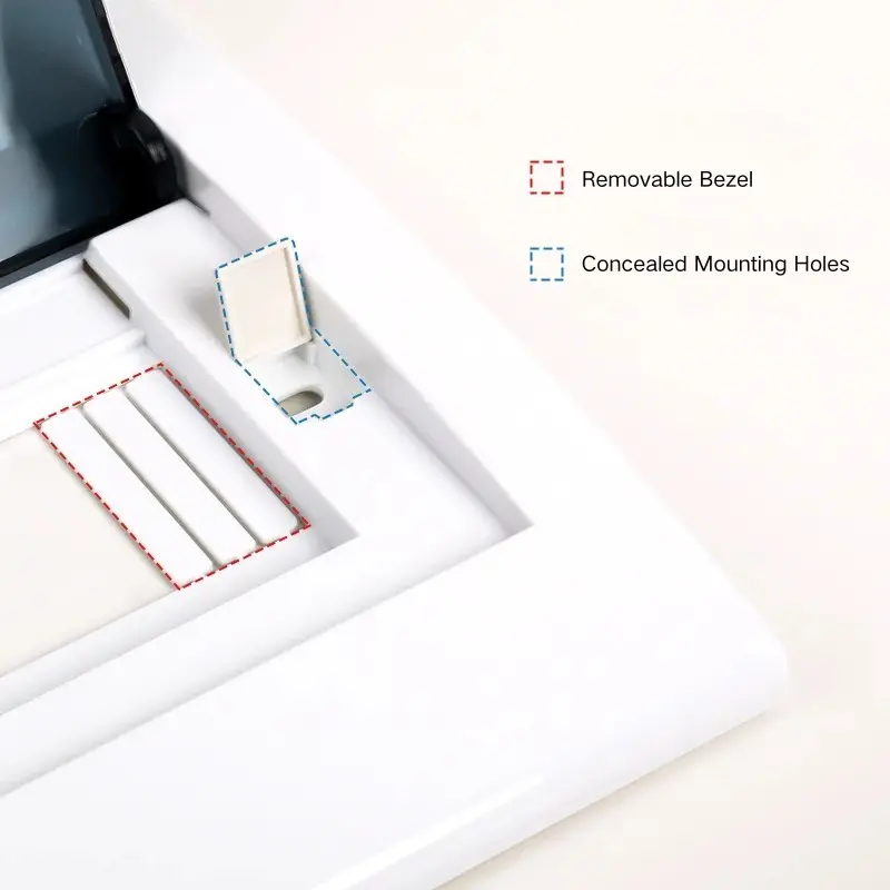 Стандартталған тесіктер мен ұялар панельде сақталған, ол негізгі ажыратқыштарға, ағып кетуден қорғайтын құрылғыларға және смарт есептегіштерге және смарт-смарт есептегіштерге және смартқыштарды қосуға немесе алып тастауға мүмкіндік береді. Панельдің бетін тізбектеу және ақаулықтарды жою үшін, мульти блоктарға арналған қосымшаларға арналған аттармен немесе белгілермен белгілеуге болады.