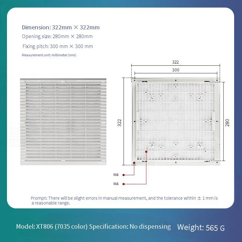 Орнату тек монтаж бетін тазалауды, шаңды туралап, оны орнына қойыңыз. Тез шаңынын жинақтау үшін тоқсан сайынғы шаң жинағыштарды шаңсорғыш немесе сығылған ауаны тазарту үшін жүргізілетіні ұсынылады. Желдету тиімділігі төмендетілген немесе зақымданған кезде, қорғау тиімділігін сақтау үшін тез арада ауыстырыңыз.