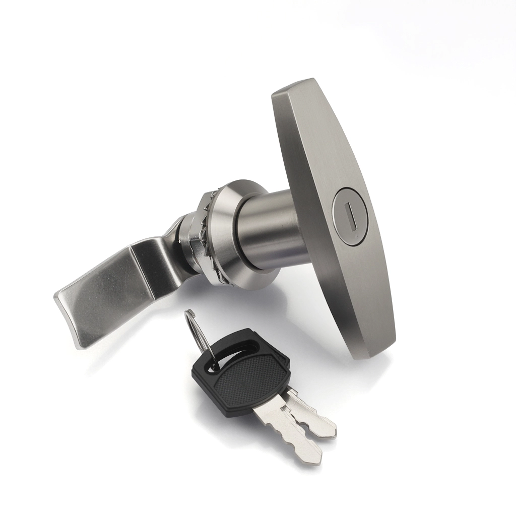 Бұл коммутациялық құрылғының тұтқасының құлпы есіктерді мықтап жабық күйде ұстау кезінде оңай жұмысты қолдайды. Оның T-тұтқасының дизайны қолмен жұмыс істеу үшін жеткілікті леверджді қамтамасыз етеді және қайталап пайдалану кезінде тұрақты позицияны сақтайды. Бұл құлып өнеркәсіптік пайдалану үшін жасалған. Ол тұрақты пайдалануды реттей алады және уақыт өте жақсы жұмыс істейді.